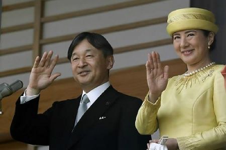 2019년 5월 4일 나루히토 일왕이 마사코 왕비와 함께 고쿄를 방문한 이들을 향해 손을 흔들고 있다. (사진=연합뉴스)