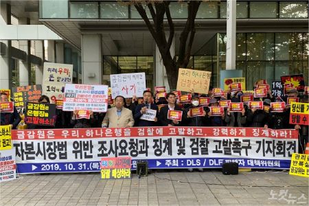 31일 DLS, DLF 피해자 대책위원회가 기자회견을 하고 있다. (사진=홍영선 기자)