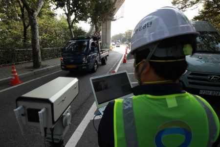 지난달 21일 오전 서울 성산대교 북단에서 관계자들이 차량의 배출가스 상태를 점검하고 있다.(사진=연합뉴스)
