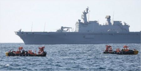 해상수색은 독도 남쪽 직경 약 54km를 8개 수색 구역으로 나눠 해경함정 5척, 해군함정 4척, 관공선 2척, 어선 2척 등 총 13척의 함정과 해경 항공기 3대, 소방 항공기 2대 등 총 5대의 항공기를 동원해 집중 수색하고 있다.