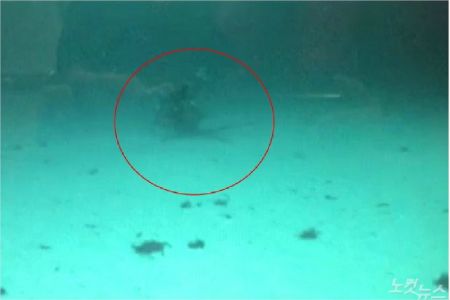 해양경찰 잠수사가 수중수색 중 헬기추정 물체를 발견했다. (사진=동해해양경찰청 제공)