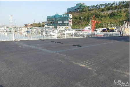 A씨와 함께 현장을 확인한 결과, 멀쩡하던 항만시설에 주차면이 그어져 있고 바다쪽으로 울타리가 쳐져 있었다.