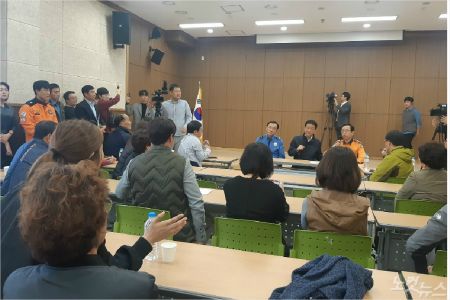 5일 진영 행안부 장관과 동해지방해양경찰청장, 소방청장이 대구 강서소방서에서 실종자 가족들을 만나 질의응답을 진행했다. (사진=권소영 기자)