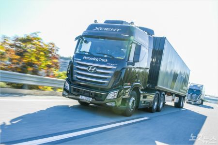 현대차는 12일, 경기도 여주 스마트 하이웨이에서 국내 첫 대형트럭 군집 주행에 성공했다고 밝혔다.