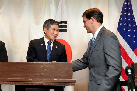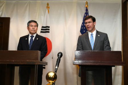정경두 국방부 장관과 마크 에스퍼 미국 국방부 장관은 17일 태국 방콕에서 열린 아세안확대 국방장관회의(ADMM-Plus) 참석을 계기로 회담을 갖고 이같이 결정했다.