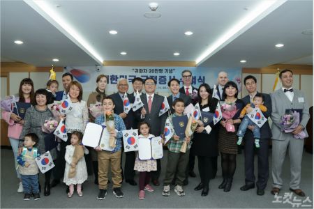 20일 법무부에 따르면 이달 기준으로 한국 국적을 취득한 귀화자가 정부 수립 이후 처음으로 20만명을 넘겼다. 이날 법무부는 정부과천청사에서 이를 기념하는 동시에 새로운 귀화자 15명의 국적 취득을 축하하는 국적증서 수여식을 개최했다고 밝혔다.