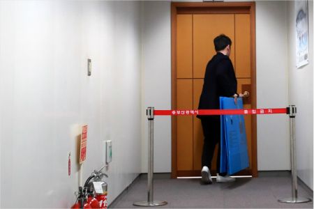 검찰이 유재수 전 부산시 경제부시장의 금융위원회 재직 시절 비위 의혹과 관련해 부산시청 부시장실을 압수수색하고 있다.(사진=연합뉴스 제공)