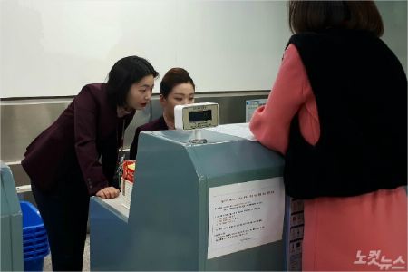 플라이강원 직원들이 티켓팅을 돕고 있다. (사진=유선희 기자)