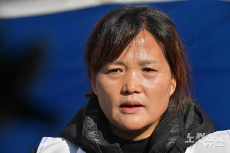 발언하는 고 김용균 노동자 어머니 김미숙씨