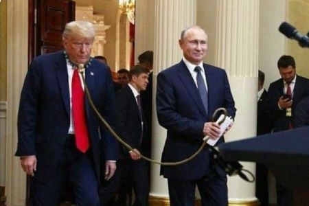 그러나 푸틴에 이끌린 푸들 이미지 같은 또 다른 트럼프의 합성 사진을 만들어 해당 사진에 반격하는 사람들도 많다.