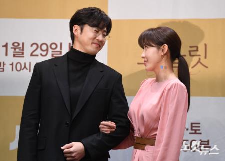 배우 윤계상과 하지원이 28일 오후 서울 구로구 라마다호텔에서 열린 JTBC 금토드라마 ‘초콜릿’ 제작발표회에 참석해 포즈를 취하고 있다.