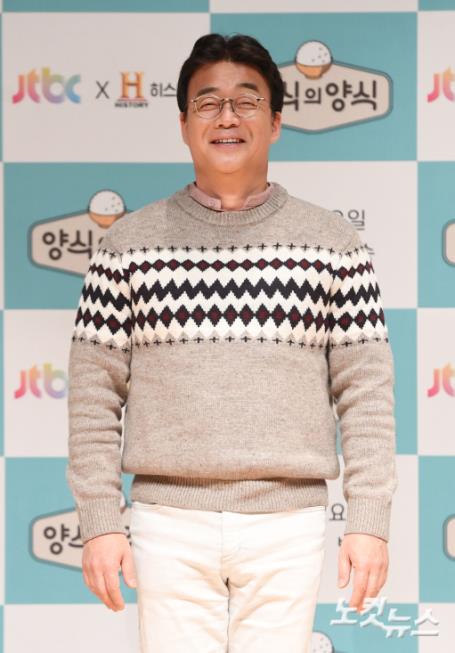 요리연구가 백종원이 29일 오전 서울 마포구 JTBC 사옥에서 열린 교양 프로그램 ‘양식의 양식’ 제작발표회에 참석해 포즈를 취하고 있다.