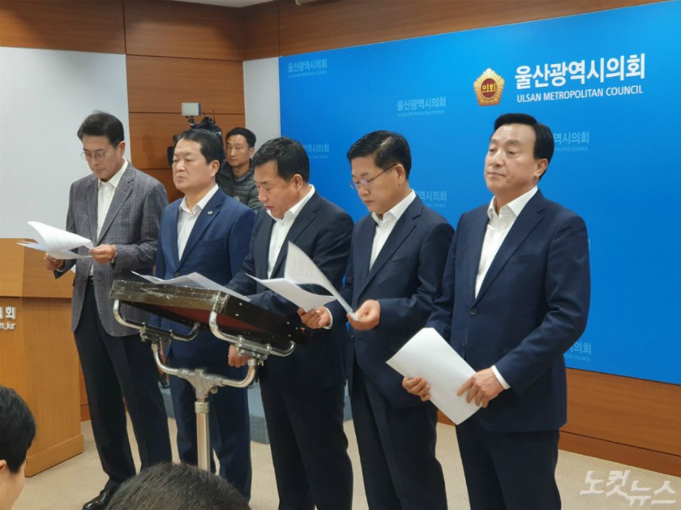 자유한국당 울산시의원들도 이날 시의회프레스센터에서 기자회견을 열고 "송 시장을 둘러싼 의혹이 일파만파 확산하고 있다"며 "송 시장은 그 당시 있었던 일에 대해 한 점 의혹도 없이 소상하게 밝혀달라"고 촉구했다.