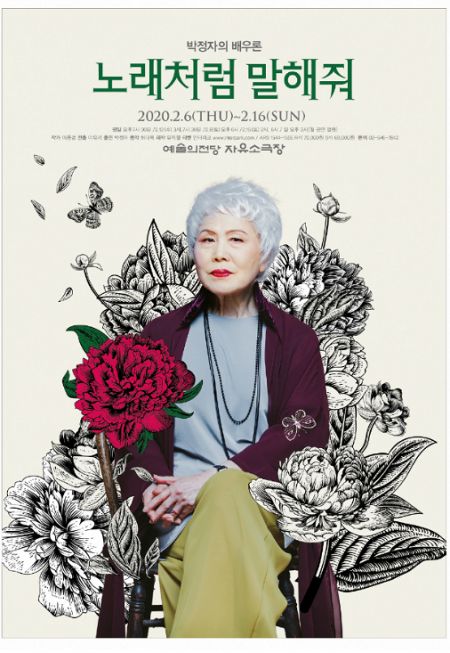 내년 2월 6일부터 16일까지 예술의전당 자유소극장에서 개막하는 박정자의 배우론 '노래처럼 말해줘'는 음악과 영상 등 다양한 장르가 어우러지는 크로스오버 공연이다. 1963년 데뷔해 한해도 쉬지 않고 연극 무대에 오른 박정자의 연기 인생을 담아냈다.
