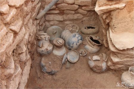또 순장덧널 3기 중 1호에서는 긴 칼과 손칼 등 철기와 함께 토기들이 확인됐다. 그중 뚜껑이 있는 접시에서는 장례할 때 담았던 음식물로 보이는 새 뼈가 출토됐다.