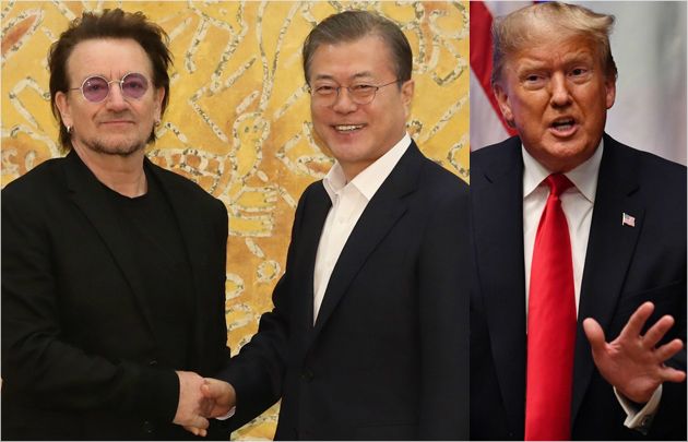 특히 트럼프의 천추의 역적인 버락 오바마 전 대통령과도 친하게 지냈던 보노를 만난 문재인 대통령.