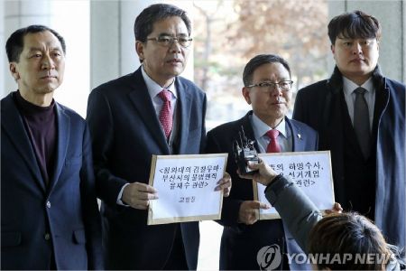 자유한국당 소속 김기현 전 울산시장이 지난 11월 27일 오전 국회 정론관에서 기자회견을 열고 자신이 경찰 수사를 받으면서 낙선했던 지난해 6·13 지방선거에 권력기관이 개입했다는 의혹을 제기하고 있다. (사진제공=연합뉴스)
