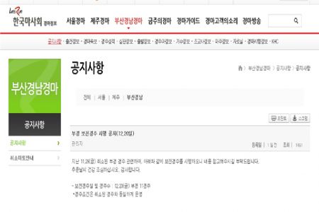 한국마사회의 보전경주 시행 공지. (사진=마사회 홈페이지 캡처)
