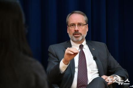 제임스 드하트 미국 국무부 방위비분담협상대표(정치군사국 선임보좌관)가 18일 오후 서울 용산구 미국대사관 공보원에서 내신 기자를 대상으로 기자회견을 하고 있다. (사진공동취재단)