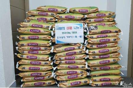 신원을 밝히지 않은 기부자는 매해 연말마다 쌀 10㎏ 100포대씩 6년째 기부를 하고 있다.