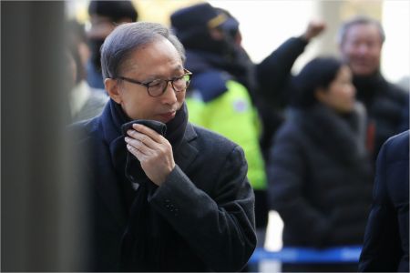 뇌물과 횡령 등의 혐의로 기소된 이명박 전 대통령이 지난해 12월 27일 서초구 서울고등법원에서 열리는 항소심 속행공판에 출석하기 위해 법정으로 향하고 있다. (사진=연합뉴스 제공)