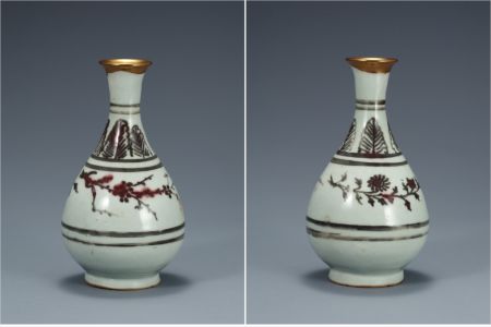 반면 중앙박물관은 "경덕진요(景德鎭窯) 초기 형태의 유리홍(釉里紅·유약 밑에 붉은 그림)으로 시기는 원대"라며 "가운데 몸통에 매화와 국화 무늬를 그렸으며, 간간이 파초와 매화가 유리홍으로 표현됐다"고 했다.
