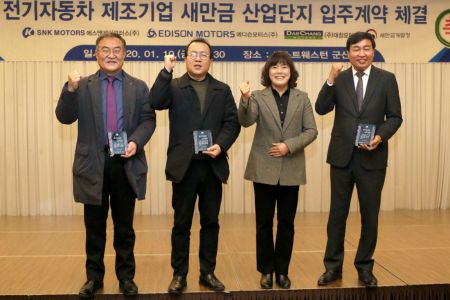 새만금개발청(청장 이현숙)은 10일 '에스앤케이모터스'와 '에디슨모터스', '대창모터스' 등 전기자동차 제조기업 3개사와 입주계약을 체결했다고 밝혔다.