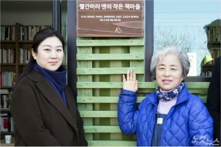 심영아 KT&G 사회공헌부장(왼쪽)과 박영숙 도서관장(오른쪽)이 '빨간머리 앤의 작은 책마을' 개관식에 참석했다.(사진제공 = KT&G장학재단)