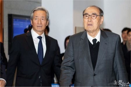 이홍구 전 국무총리와 정몽준 아산재단 이사장이 20일 서울 송파구 서울아산병원 장례식장에 마련된 故 신격호 롯데그룹 명예회장 빈소에 들어서고 있다. 이한형기자
