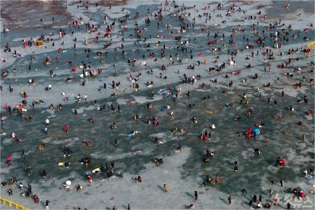 빙어호에 조성된 빙어낚시터에는 가족이나 연인단위의 관광객이 몰려 한겨울 강추위를 잊은 채 은빛 빙어를 낚으며 즐거운 시간을 보냈다.
