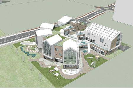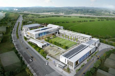 또, 김해평야와 낙동강에 인접한 부지여건을 고려하여 열린 건물 배치를 하고, 각 시설이 만나는 소통의 링크공간은 학생들의 창조성을 극대화하는 플랫폼으로 꾸며진다.