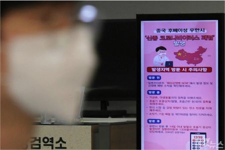 한 시민이 마스크를 착용하고 '우한 폐렴' 신종 코로나바이러스 예방 관련 안내문을 지나가고 있다. (사진=이한형 기자)