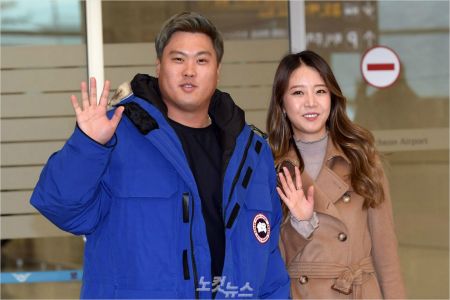 토론토에 입단한 류현진이 지난해 12월 30일 오후 인천공항을 통해 아내 배지현과 함께 귀국한 모습.(사진=이한형 기자)