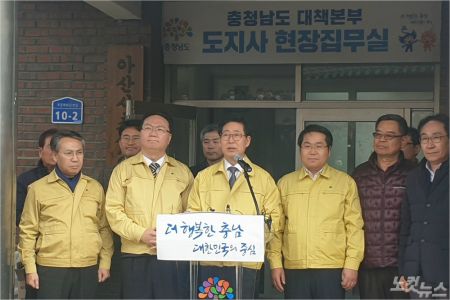 양승조 충남도지사는 31일 중국 우한교민 임시보호시설인 충남 아산 경찰인재개발원 인근에 집무실과 임시숙소를 마련했다.
