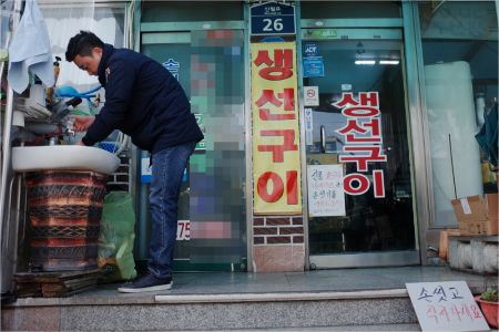 3일 낮 12시 창원 의창구 신월동의 한 생선구이 가게 앞.