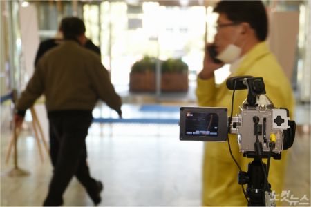코로나19 확산에 따라 제주도청에 설치된 발열 감시 카메라. (사진=이인 기자)