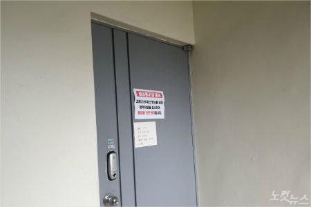 이 건물에서 200m 정도 떨어진 또 다른 건물의 상황도 크게 다르지 않았다. 해당 건물 4층과 5층 출입문에는 A4 용지에 '출입통제 및 폐쇄 코로나 19 확산 방지를 위해 방역작업을 실시해 출입을 전면 통제합니다'라고 쓰여 있었다. 하지만 비밀번호만 알면 누구든 언제든지 출입이 가능한 상황이었다.