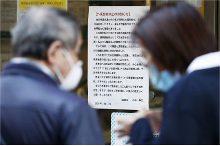 일본 도쿄도(東京都)의 한 병원에 외래 진료 중단을 알리는 안내문이 붙어 있다.(사진=연합뉴스)