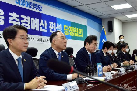 ◆ 김상조> 또 세입 경정 부분이 있으니까. 그러니까 여러 가지를 합치면 추경 부분만 하면 지금 말씀하신 숫자 근처에... 그 이상 될지 모르겠습니다마는 올해 기정 예산과 예비비까지를 합치면 규모는 더 커질 수 있다. 그러니까 정부가 총력을 다하고 있다라고 하는 말씀을 드리겠습니다.