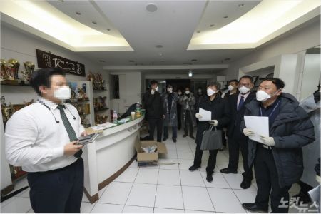 경기도 역학조사관, 관계 공무원들이 25일 경기 과천시 별양동 신천지 과천총회본부에서 코로나19 관련 역학조사를 하고 있다. (사진=경기도청 제공)