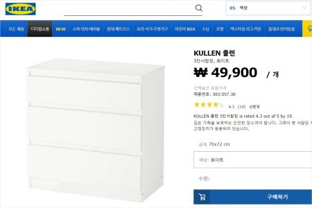 이케아 쿨렌 3단 서랍장(캡처=이케아)