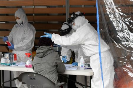 10일 코로나19 무더기 확진자가 발생한 서울 구로구 코리아빌딩 앞에서 입주자들이 코로나19 검사를 받고 있다. (사진=이한형 기자/자료사진)