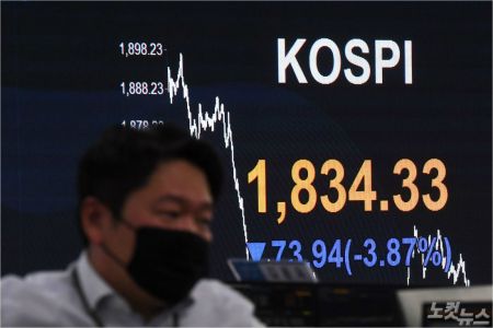 코스피, 전 거래일보다 3.87% 떨어진 1834.33에 장 마감
