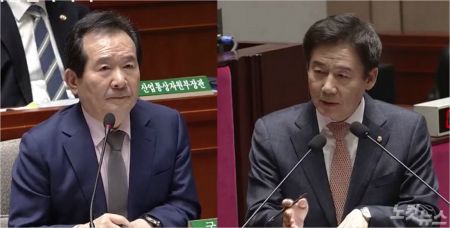 11일 국회예결위에서 정세균 총리와 이용호 의원이 질문과 답변을 주고 받고 있다.(사진=이용호 의원실)