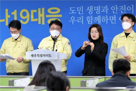 코로나19 관련 브리핑중인 제주도재난안전대책본부(사진제공=제주도)