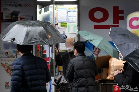 ‘마스크 5부제‘ 시행 이틀째인 10일 오후 서울 종로구 한 약국에서 직장인들이 점심시간을 이용해 마스크를 구매하고 있다. (사진=황진환 기자/자료사진)