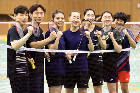 배드민턴 국가대표 선수들. 왼쪽부터 손완호, 최솔규 김소영, 이소희, 성지현, 김가은, 안세영.(사진=연합뉴스)
