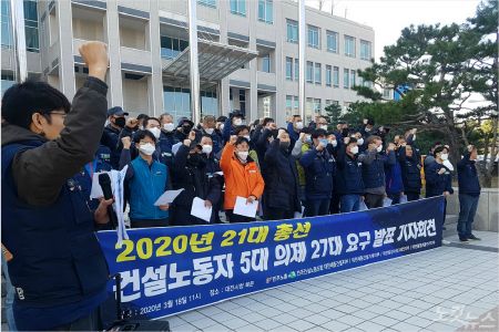 건설노동자들이 건설현장의 부당한 현실을 바로잡고 처우 개선을 이끌어낼 수 있는 공약을 21대 총선에 반영해줄 것을 후보들에게 요구하고 나섰다.