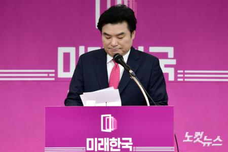 미래한국당 원유철 신임 당 대표가 20일 오전 서울 영등포구 당사에서 열린 기자회견에서 굳은 표정을 짓고 있다.