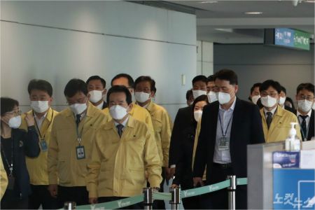 정세균 국무총리가 지난 19일 오전 코로나19 대응 검역 현장 점검을 위해 인천국제공항 1터미널을 방문, 현장을 살펴보고 있다 (사진=공항사진기자단 제공)
